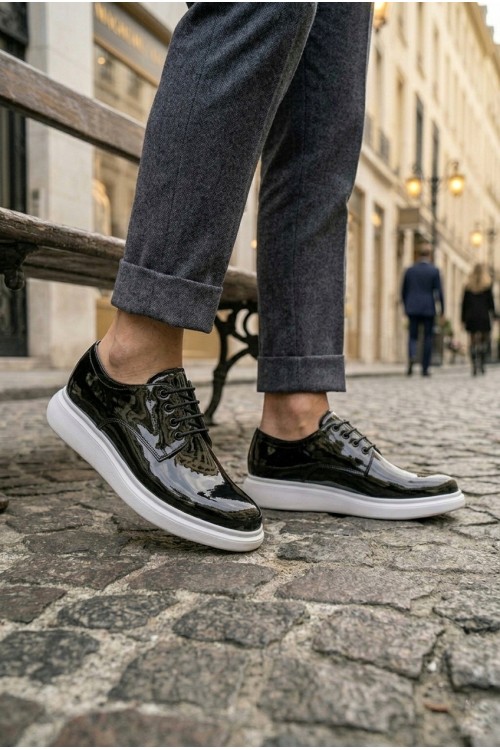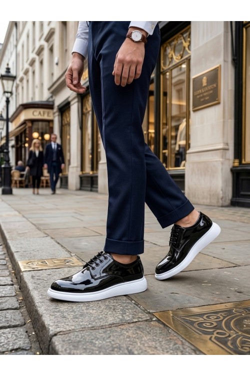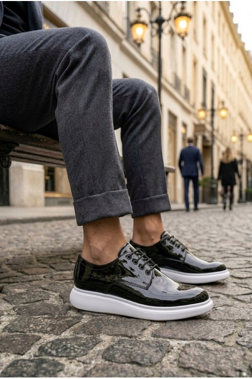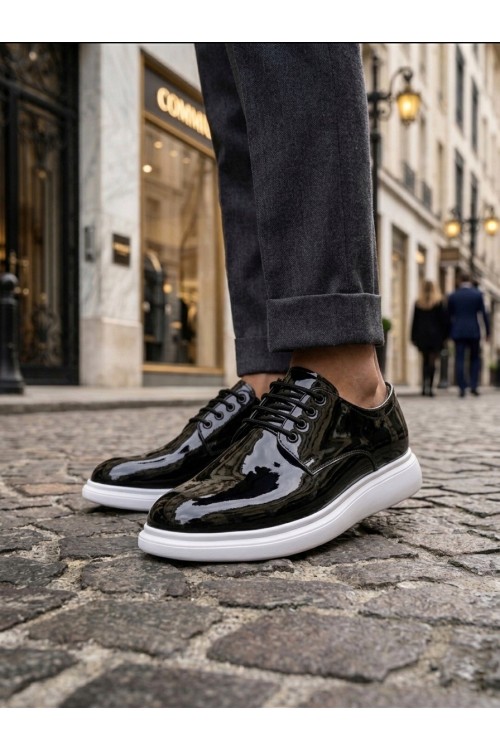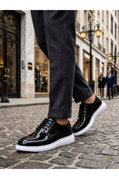 BA0003 Siyah Bağcıklı Rugan Beyaz Taban Erkek Klasik Ayakkabı