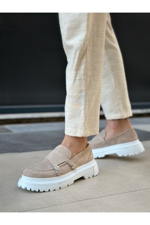 BA0242 Tokalı Klasik Yüksek Taban Krem Süet Erkek Ayakkabı