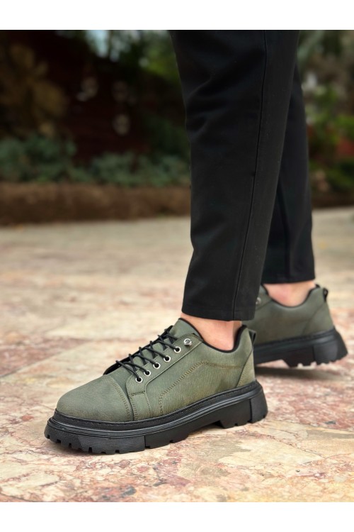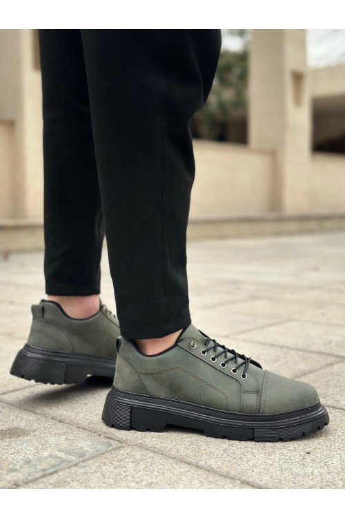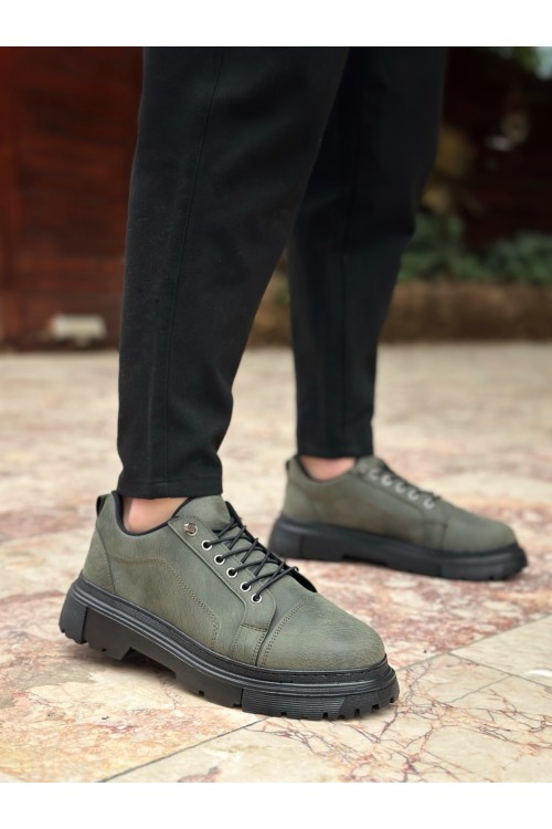 BA0245 Haki Akıllı Lastik Bağcık Yüksek Taban Günlük Erkek Ayakkabı