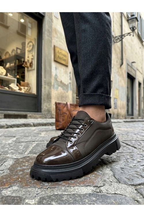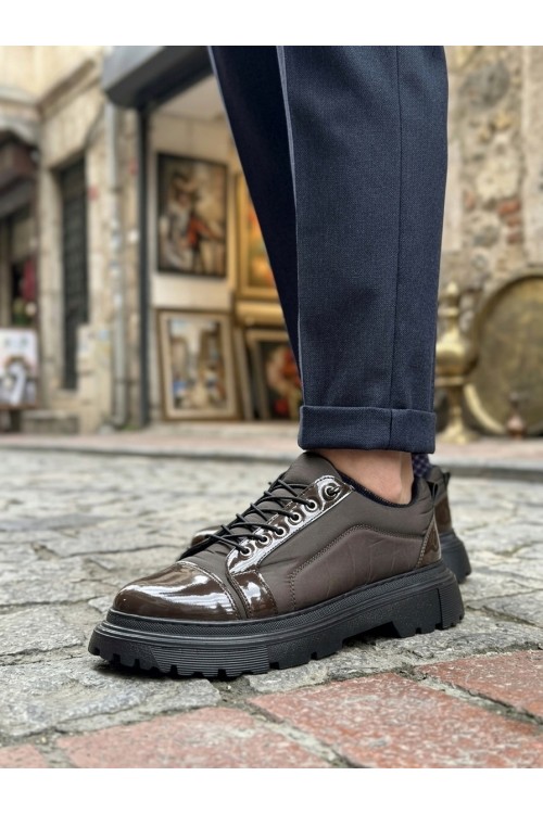 BA0245 Kahverengi Rugan Paraşüt Detaylı Akıllı Lastik Bağcık Yüksek Taban Günlük Erkek Ayakkabı