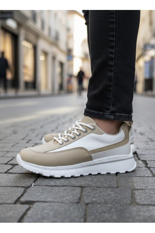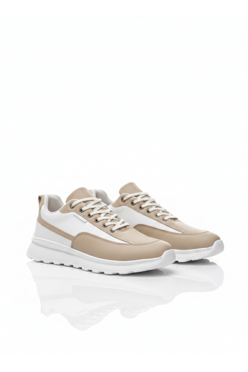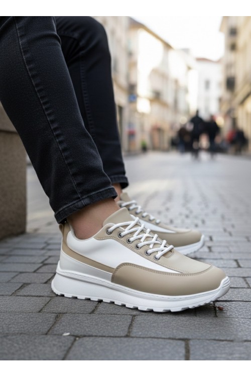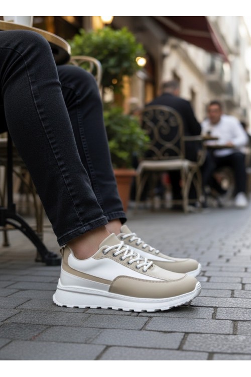 BA0246 Krem Bağcıklı Yüksek Beyaz Taban Günlük Erkek Ayakkabı