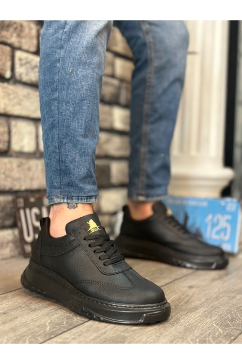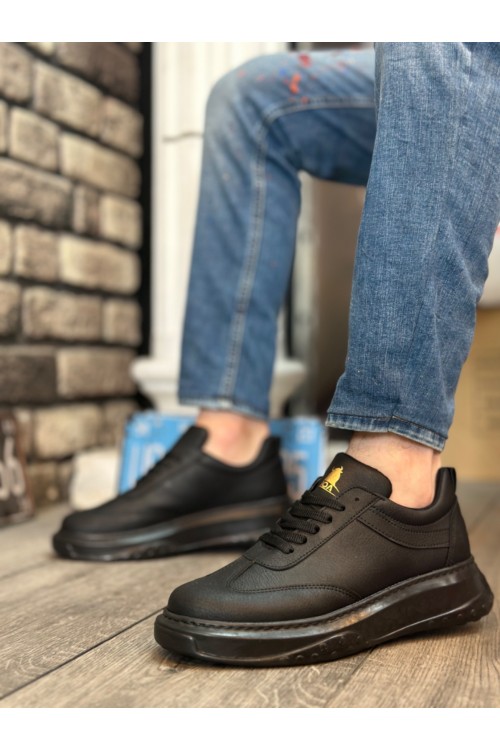 BA0327 BOA Siyah Kalın Yüksek Taban Bağcıklı Spor Erkek Ayakkabı