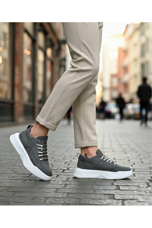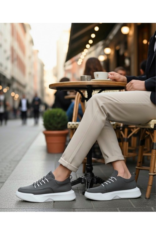BA0332 Merdiven Desen Bağcıklı Erkek Yüksek Taban Antrasit Cilt Spor Ayakkabı