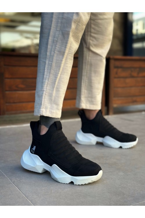 BA0401 Bağcıksız Rahat Yüksek Taban Siyah Süet Erkek Spor Yarım Bilek Bot