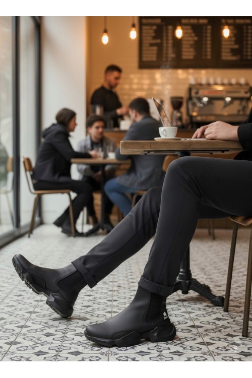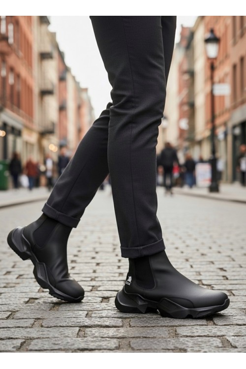 BA0444 Bağcıksız Rahat Yüksek Taban Siyah Erkek Spor Yarım Bilek Bot