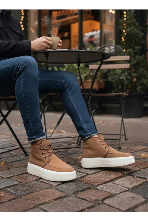 BA0550 İçi Kürklü Bağcıklı Taba Krem Taban Erkek Tarz Spor Bot