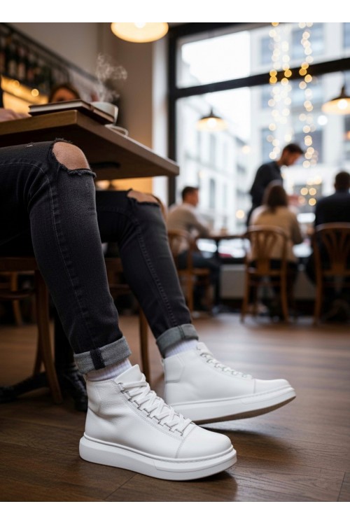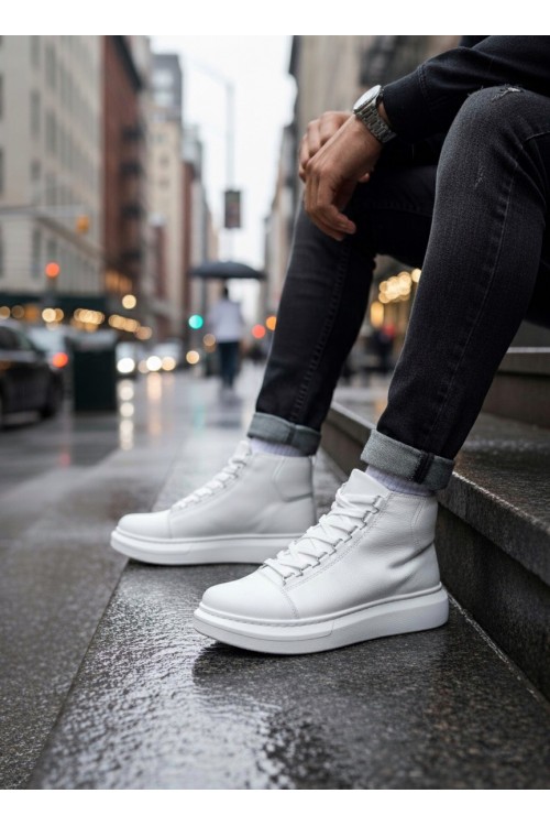 BA0713 Bağcıklı Beyaz Yüksek Taban Erkek Tarz Spor Bot