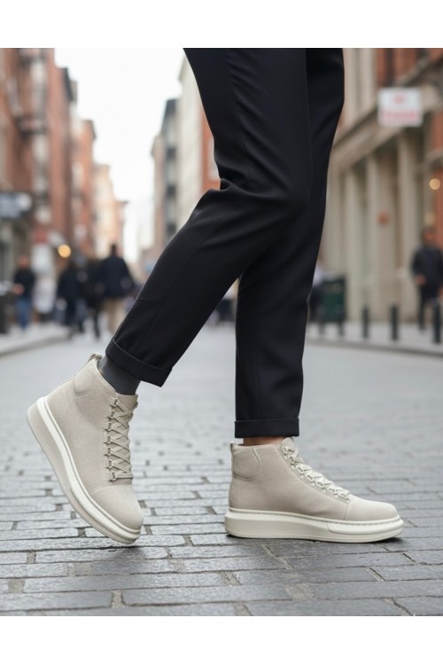 BA0713 Bağcıklı Süet Bej Yüksek Taban Erkek Tarz Spor Bot