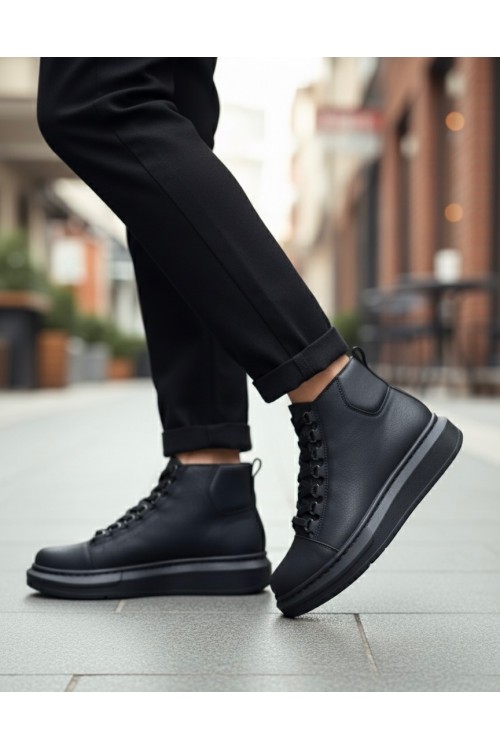BA0713 Bağcıklı Yüksek Siyah Taban Erkek Tarz Spor Bot