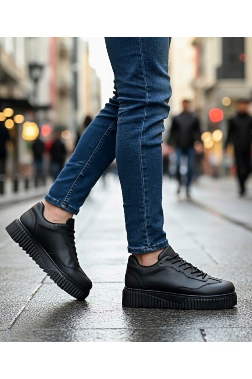 BA0802 BOA Siyah Renk Siyah Yüksek Taban Erkek Günlük Ayakkabı