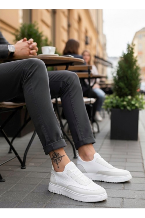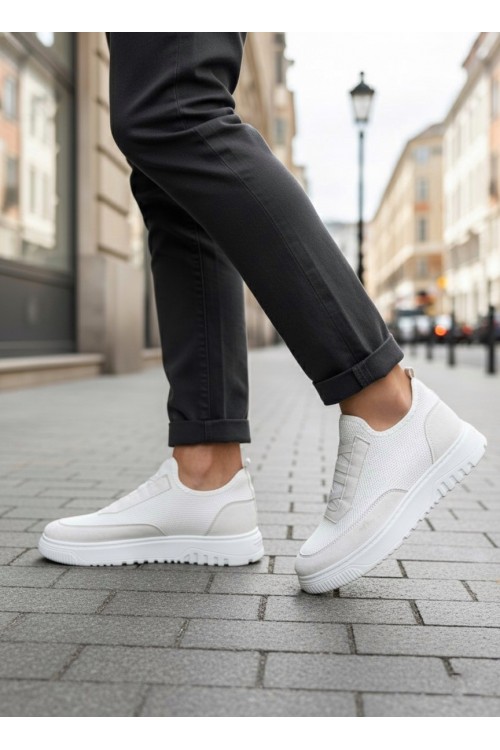 BA0911 Özel Örme Triko Deri Tozu Detaylı Beyaz Günlük Spor Ayakkabı