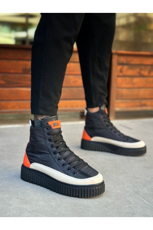 BA0811 BOA Yüksek Siyah Taban Paraşüt Kumaş Turuncu Cilt Detaylı Yarım Bilek Spor Bot